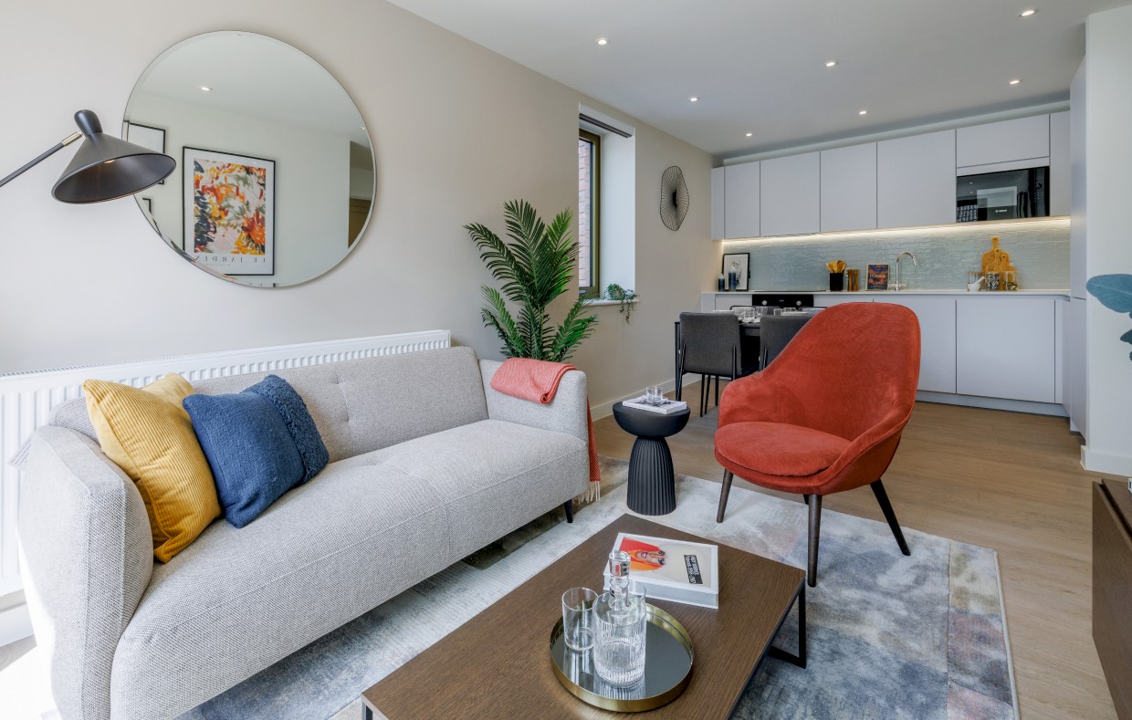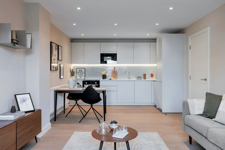 Whether you’re relaxing alone or entertaining friends and family, our free-flowing, open-plan living spaces make everything effortless. And you can cook like a chef in a pro kitchen with your integrated Bosch appliances, grey cabinetry, and high-quality white work surfaces.