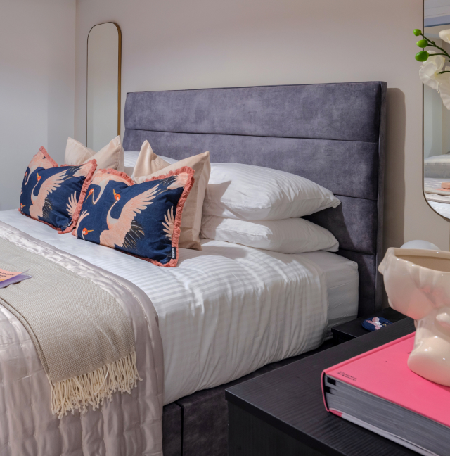 Spacious but cosy, the bedrooms are havens for peaceful nights and lazy mornings. Striking feature walls, oversized headboards and high-quality carpets set a luxurious tone. And plenty of storage helps you keep the space looking slick. Floor-to-ceiling windows offer widescreen vistas, while apartments with balconies give you a private perch to soak up the view.